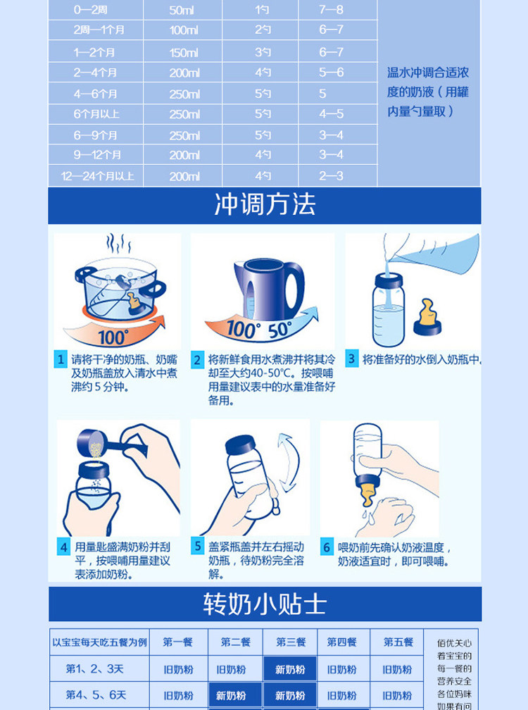 【储存方法】 阴凉干燥处,避免阳光直射,奶粉不能放冰箱,一个月内食完。